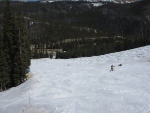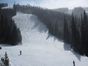 The Parsenn Bowl is located above the tree line and at the highest lift-served point on the mountain,12,060 ft. It’s one of the few big bowls in Colorado that intermediates can enjoy. The surrounding views of the Rocky Mountains are breathtaking. There are some glades at the bottom of the bowl that are widely spaced and often un-tracked after a storm.
